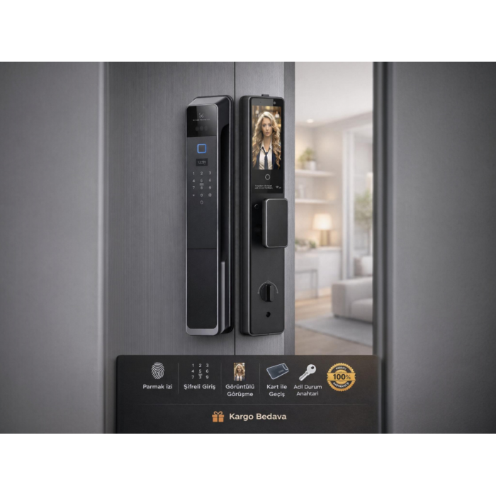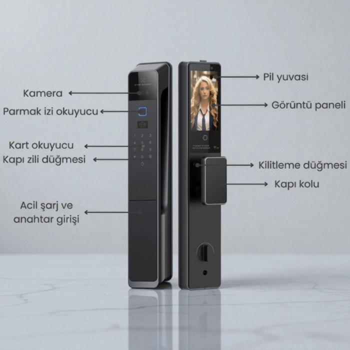 *Tuya ve SmBu akıllı kapı kilidi, Türkçe menü ve seslendirme desteği sayesinde son derece kullanıcı dostu bir deneyim sunar. Kilidin menüleri ve ayarları tamamen Türkçe olarak görüntülenirken, işlemler sırasında Türkçe sesli yönlendirmelerle desteklenir. Böylece kurulumdan günlük kullanıma kadar tüm işlemleri dil bariyeri olmadan kolayca gerçekleştirebilirsiniz. Ayrıca İngilizce, Rusça, Arapça, İspanyolca ve toplamda 12 farklı dil seçeneği de mevcuttur. Yüz tanıma, parmak izi, avuç içi tarama, kart, şifre ve mekanik anahtarla açma seçenekleri sunan; aktif interkom özellikli; mevcuttaki kapı kilidini değiştirmeye gerek kalmadan doğrudan kurulabilen ve monoblok kilitlerle uyumlu 4200 mah bataryalı , Türkçe dil destekli Wi-Fi kapı kilidi.